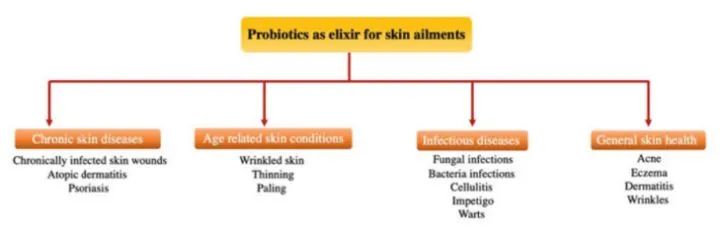 圖 4 益生菌在各種皮膚疾病中的作用